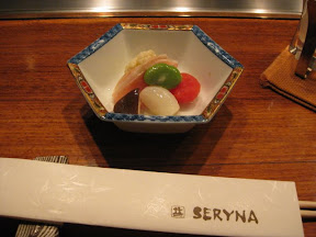 Next dish was the beef sashimi with a sweet onion on top, the beef was excellent and the onion complimented the flavor! The girls in the group where given a sweet pumpkin cold soup to go with the dish that was extremely yummy!
